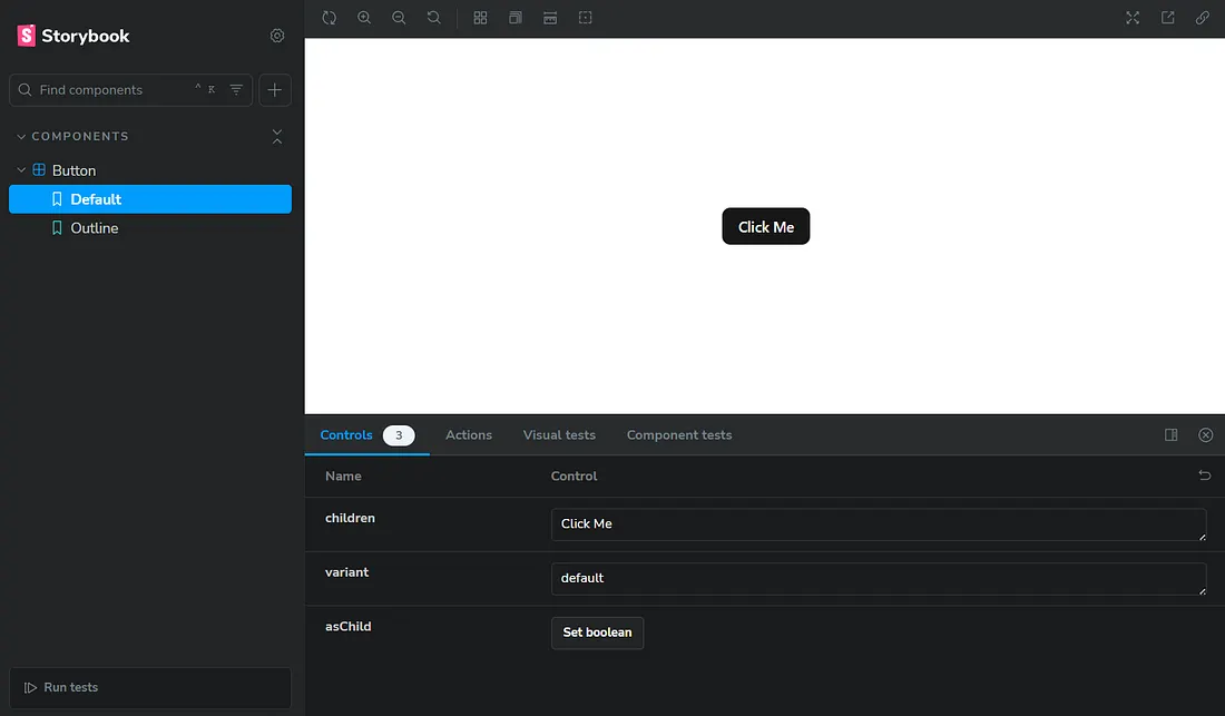 npx shadcn@latest add buttonYou can now import the Button component in your Storybook story or edit the component at src\components\ui\button.tsx